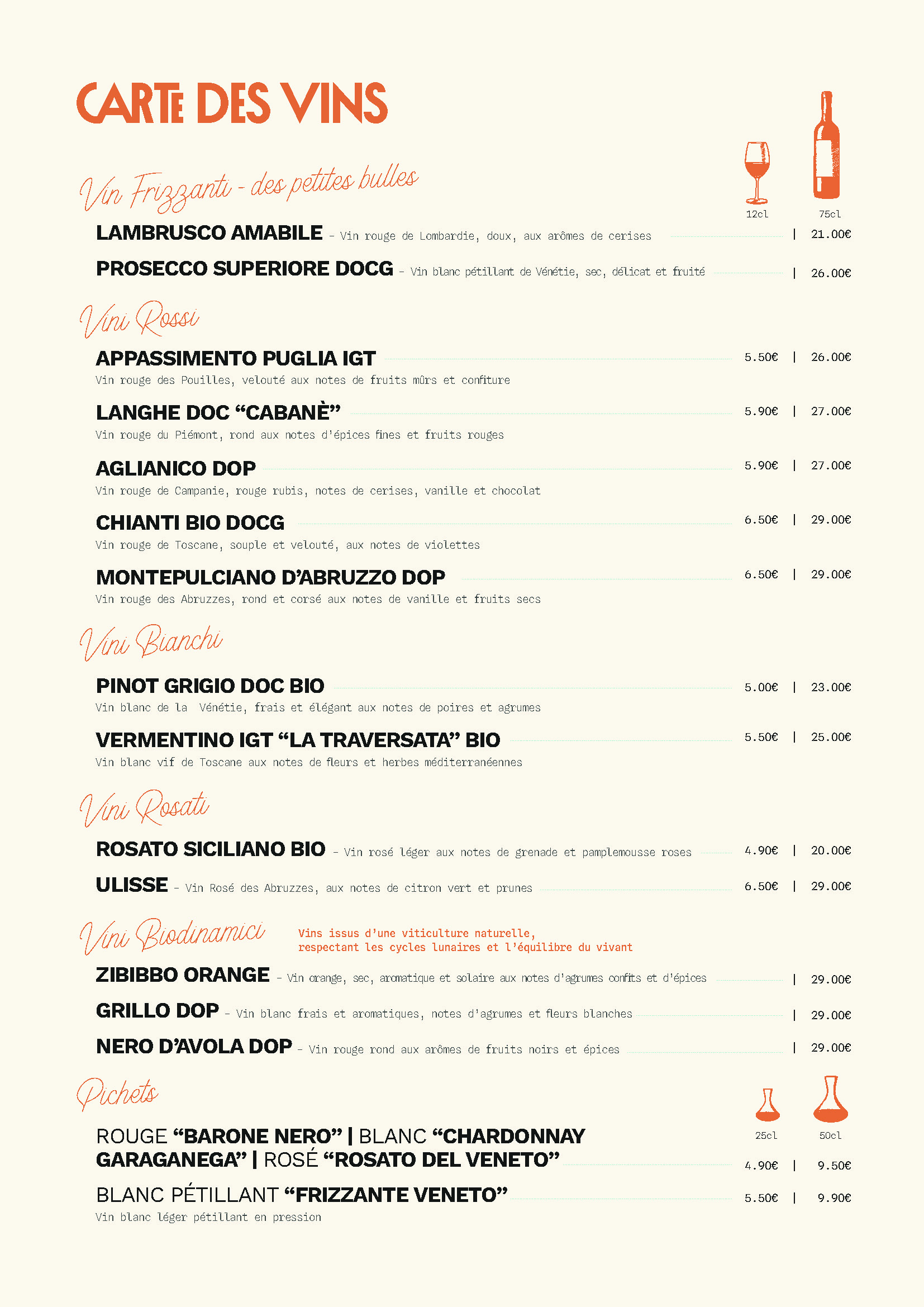 Accompagnez votre repas avec notre sélection de vins italiens soigneusement choisis pour compléter chaque plat et enrichir votre expérience culinaire.